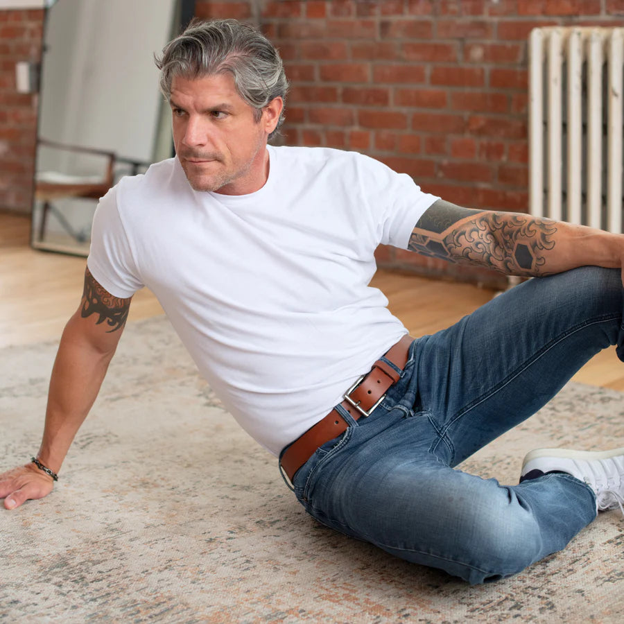 Our distressed leather is aniline dyed in a drum, giving each belt a rich, vibrant color that reacts beautifully over time. Pull or stretch the leather, and the color subtly lightens, creating unique highlights—this is what makes pull-up leather so distinctive. Every mark, every patina, tells your story, ensuring no two belts are exactly alike.
